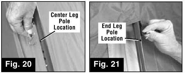 - Insert metal hook on elastic straps on Rainfly into the hole on each Leg Pole. (Fig 20 & 21)