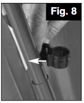 - Locate the plastic hooks at sides and corners of tent, then snap onto Leg Poles to attach. (Fig. 8)