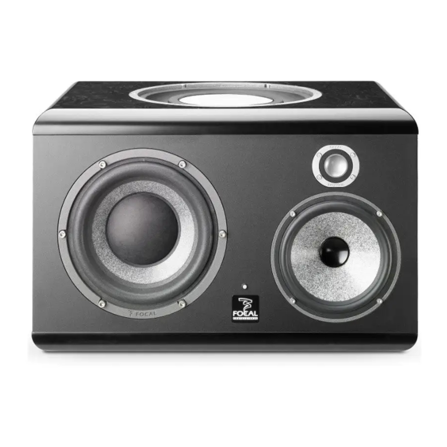 FOCUS: This switch permits to use the monitor in 2 or 3-way mode. The activation of the FOCUS mode (2-way mode) enables to deactivate the subwoofer and consequently the passive radiator. Only the tweeter and the woofer can work. The frequency response of the 2-way monitor is 90Hz-20kHz (+/- 3dB). The FOCUS mode is very useful to check the mix transfer on equipments with limited bass frequencies (TV, multimedia systems, Docking station, ...). Deactivate the FOCUS mode permits to activate the 3-way mode of the monitor. All the transducers can work now and the monitor frequency response is 30Hz – 40kHz (+/- 3dB).