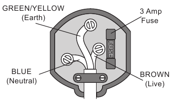 Plug should be BS1363 approved Fit a 3 Amp Fuse