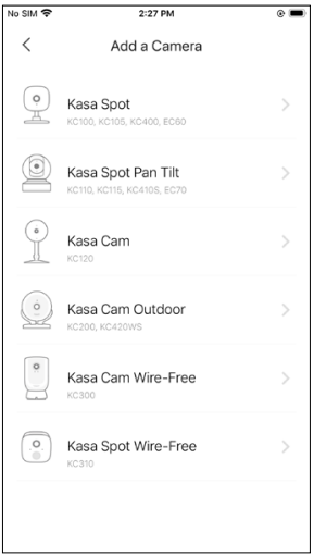 button in the Kasa app and select Cameras > Kasa Spot Pan Tilt.