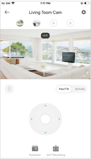 - Pan and Tilt – Swipe up, down, left and right on your phone to rotate and set the camera's point of view.