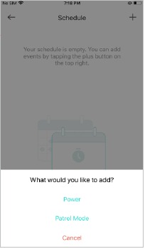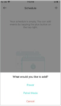 Schedule: Set schedules to automatically turn on/off your camera, or turn on/off patrol mode (the camera moving between your viewpoints) of your camera, at set times according to your daily routine.