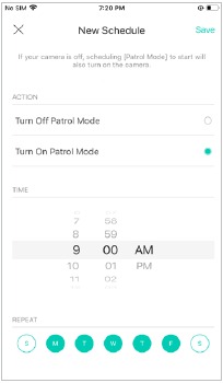 - Set a schedule to turn the patrol mode on or off. For example, I want to turn on patrol mode at 9:00 AM every weekday.