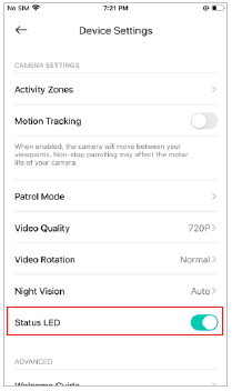 When turned off, it means privacy mode is enabled. You can turn the camera off when you do not want your camera to stream live view video and record videos. - Edit device name.