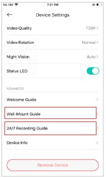 - Get to know more about the wall-mount information or 24/7 recording information by tapping Wall-Mount Guide or 24/7 Recording Guide.
