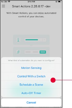 Schedule a Scene: Schedule a "Scene" to be turned on automatically at the time specified.