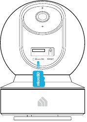 Or you can save the footage continuously on a microSD card* and play back with your Kasa Smart app. The camera will overwrite the oldest files when the microSD card memory is full. See the instructions below to insert a microSD card to your Kasa Spot.