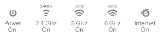 Note: If the 2.4 GHz, 5 GHz, and 6 GHz LEDs are off, press and hold the Wi-Fi button on the back for more than 2 seconds. These LEDs should turn solid on.