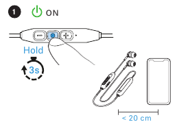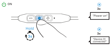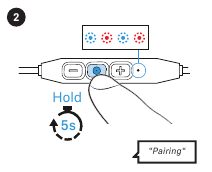 - Press and hold the multi-function button for 3 seconds. The headphones are in Bluetooth pairing mode. The LED flashes blue and red.