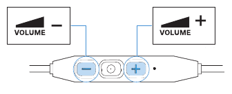 - Before putting the headphones on, adjust the volume to a low level (> 15).