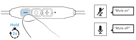 To mute the headphones' microphone during a call:- Press the volume - button for 2 seconds.