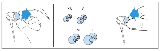 - Press the earphones lightly into the ear canal.