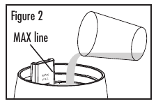 - Pour a glass of cool, fresh tap water into the tank area inside the humidifier housing (see Figure 2). Ensure the water level is below the MAX line, do not overfill. DO NOT fill with warm water as this may cause leaking.