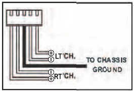 High level inputs should only be used when RCA outputs are not available from the head unit. Connect the head unit speaker outputs to the high level input connector as shown below. The black wire (signal reference ground) may or may not require a connection to chassis ground - depending on your particular installation.