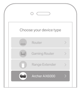 button in the Tether app and select Archer AX6000. Follow the steps to complete the setup and connect to the internet.