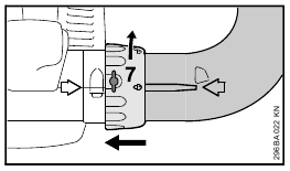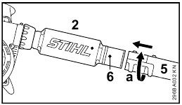 - Push nozzle (5) in position (a) onto the blower tube (2) as far as lug (6) and rotate in direction of arrow to lock in position.