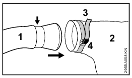 - Push the suction tube into the fan housing stub (4) as far as stop.