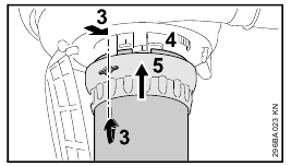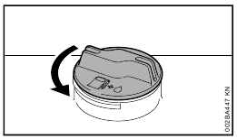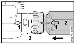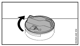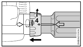 - Rotate the union nut (4) in direction of arrow until symbol ƒ is in line with the arrows – union nut snaps audibly into position.