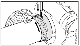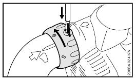 - Rotate the union nut (7) in direction of arrow until symbol