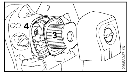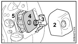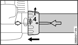 - Rotate the union nut (4) in direction of arrow until symbol