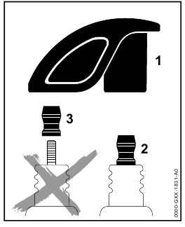 - Push the blower tube (2) into the fan housing stub (3) as far as stop.