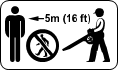 In order to reduce the risk of personal or even fatal injury to bystanders from blown objects keep bystanders at least 16 feet (5m) away when the power tool is running.