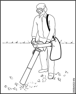 The blower is designed for singlehanded operation. It must be carried by the control handle in the right hand.