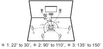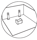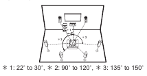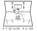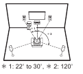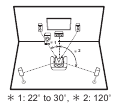 This is a 5.1-channel system that is the basic surround system. Front speakers output front stereo sound and a center speaker outputs center sound such as dialogs and vocals. Surround speakers create back sound field. Powered subwoofer reproduces bass sounds and creates rich sound field. The front speakers should be positioned at ear height, while the surround speakers should be positioned just above ear height. Center speaker should be set up facing the listening position. Place the powered subwoofer towards the front. Placing it between the center speaker and a front speaker gives you a natural sound even when playing music.