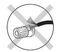 Make sure the exposed wires of the speakers do not stick out of the speaker terminals when connecting. If the exposed wires of the speakers touch the rear panel or the + and – wires touch each other, the protection circuit will be activated.