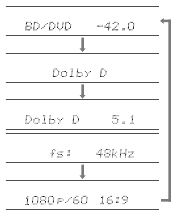 . Note that there is no display on the TV screen when the input selector is "CD", "TV", "PHONO", "FM", or "AM", so follow the main unit's display while doing the operations.