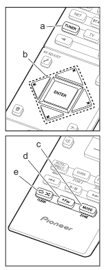 button) and ENTER button: Select the item with the cursors and press ENTER to confirm your selection. When using the TUNER, select the frequency with