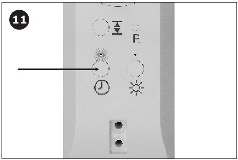 - Press the "Timer" (timer) (2h) and the "Light" (light) (2j) buttons simultaneously until you see 2 red LED's (2g & 2i)
