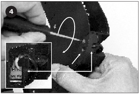- Prepare the wiring and pull the end of the power cord from the hole in the wall. Remove the cable holder from the back of the motor. Connect the power supply and mount the cable holder back (4)