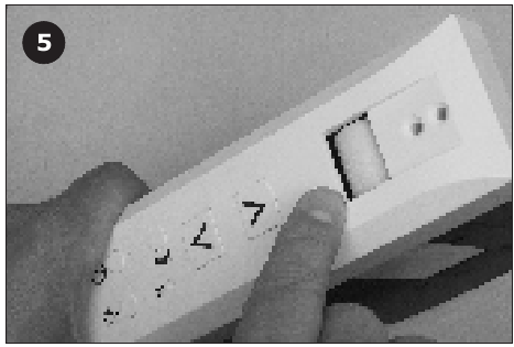 - Place remote battery, and pay attention to the polarity (+ and -) (7).