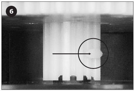 - Insert the tape into the motor from the front side, in the gap between the front roll (2b) and the bottom edge of the hole (5). Insert the tape until it appears at the back side of the motor.