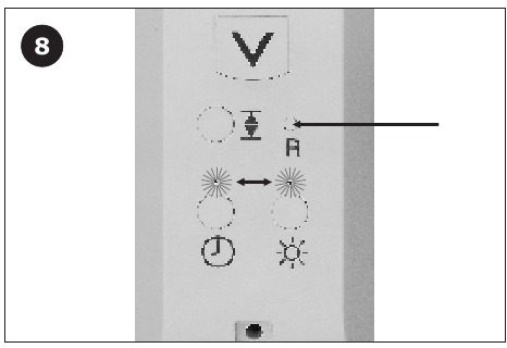 - Sunlight control only works when highest and lowest points are set. When the "Light" (light) indicator LED (2i) is on, the motor will use the sunlight settings, when the LED is off, the motor won't respond to sunlight