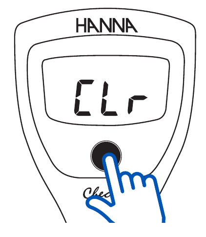 Coloque el medidor en el modo de calibración. Mantenga pulsado el botón ON/OFF (encendido/apagado) hasta que se muestre "CLr". El medidor estará ahora en la calibración predeterminada. No se mostrarán etiquetas en el modo de medición hasta que se realice la calibración.