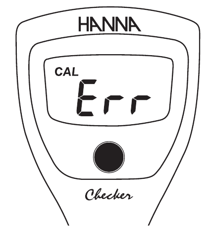 En el modo de calibración, si el medidor muestra un mensaje "Err" (error) cuando está en la solución tampón fresca correcta, la sonda debe limpiarse. Coloque la sonda en la solución de limpieza HI700601 durante 15 minutos. Enjuague con agua purificada y coloque en la solución de almacenamiento durante 1 hora antes de calibrar. Si el mensaje "Err" (error) persiste, la sonda HI1271 debe sustituirse.