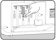 - La marca de peligro de descarga eléctrica y el símbolo gráfico asociado se encuentran en la parte posterior de la unidad.