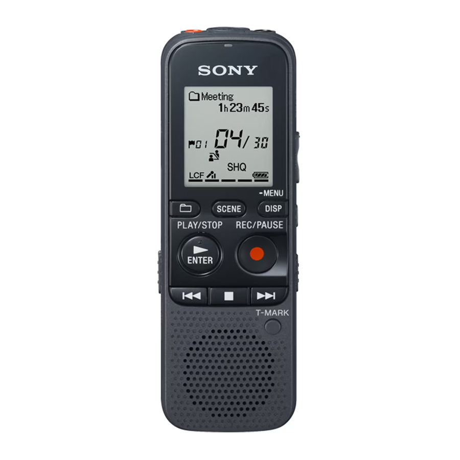 También puede ver la guía de ayuda en la siguiente página de inicio de soporte al cliente de Sony IC Recorder: http://rd1.sony.net/help/icd/p33/cn/
