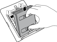 - Deslice el cierre de la puerta de la película para desbloquear y luego abra la puerta de la película.