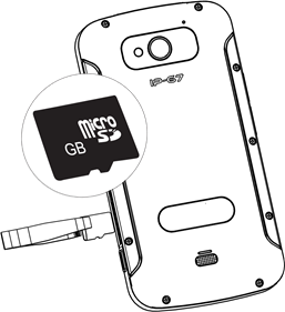 Nota: Es posible insertar y quitar su tarjeta SD mientras el móvil está encendido sin afectar su funcionamiento. Se recomienda desmontar su tarjeta en Settings (Ajustes) →Storage (Almacenamiento) →Unmount SD card (Desmontar tarjeta SD) antes de quitarla en caso de que el móvil esté encendido. Permite no corromper algunos de los datos en la tarjeta SD.