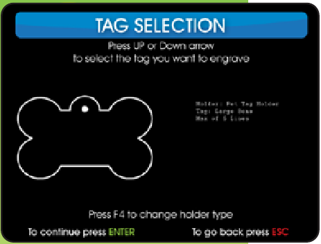 Desde la PANTALLA DE SELECCIÓN DE PLACA (TAG SELECTION SCREEN), pulse F4 para acceder a la pantalla de configuración del soporte.