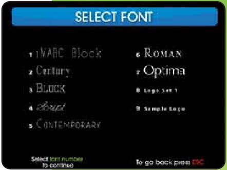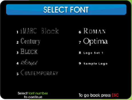 Desde la pantalla de SELECCIONAR FUENTE (SELECT FONT screen), elija el estilo de tipo deseado pulsando el número correspondiente en el teclado.
