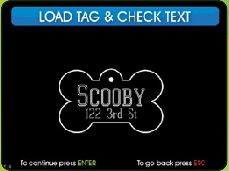 Utilizando la pantalla de CARGAR PLACA Y VERIFICAR TEXTO (LOAD TAG & CHECK TEXT screen), asegúrese de que la información se introduce correctamente y que se elige el estilo de tipo correcto.