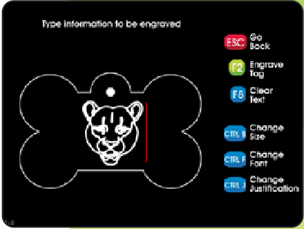 Escriba la información que debe aparecer en la parte frontal de la placa. Tenga en cuenta que iMARC aumentará o disminuirá automáticamente el tamaño del tipo para una cobertura óptima. Pulse ENTER una vez para ir a la siguiente línea, dos veces para saltar una línea y RETROCESO (BACKSPACE) para editar.