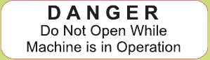 Estas etiquetas identifican los peligros de abrir la máquina mientras está en uso. Mantenga las manos y la ropa alejadas de las partes móviles dentro de la puerta para evitar lesiones y peligros mecánicos. Por favor, remita todo el servicio a personal cualificado.
