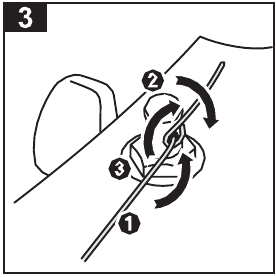 Enrolle la cuerda alrededor del poste de la cuerda unas tres vueltas de arriba a abajo. Para las cuerdas 1 y 2, envuelva el extremo de la cuerda como se muestra en la figura 3 para evitar que la cuerda se salga del poste de la cuerda.