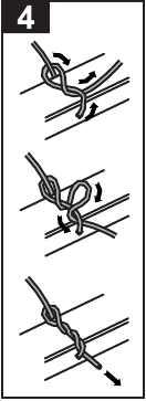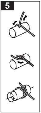 Para sujetar una cuerda al poste de la cuerda, pase el extremo de la cuerda a través del orificio del poste como se muestra en la figura 5, y enrolle la cuerda alrededor del poste de modo que los enrollamientos se superpongan desde arriba, asegurando firmemente el extremo de la cuerda.